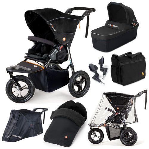 Out n About Pushchairs were first developed to allow parents to go out jogging whilst taking their baby along too. Now the stylish 3 wheel pushchair is a modern and practical pushchair great for busy city life, as well as versatile off road use. The Out n About Nipper V4 360 Pushchair has many great features and benefits, as it now has a slimmer design for easier manoeuvring and can also be transformed into a practical travel system with the addition of a Maxi-Cosi Car Seat. The 360 Nipper is available in both single and double pushchairs in a range of stylish colours; a range of accessories are also available allowing you to adapt and customise your buggy to your needs. At Babys-Mart we feel the V4 Nipper is a brilliant all round pushchair making it one of the best three wheel off-road buggies on the market.
