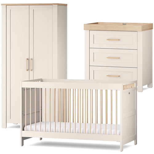 Ideal for gender-neutral nurseries, the Seville collection boasts a soft cashmere finish paired with oak accents, blending seamlessly into any home.