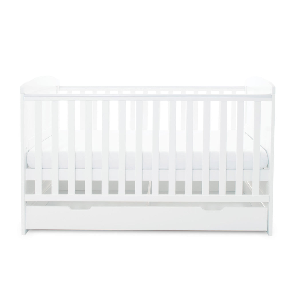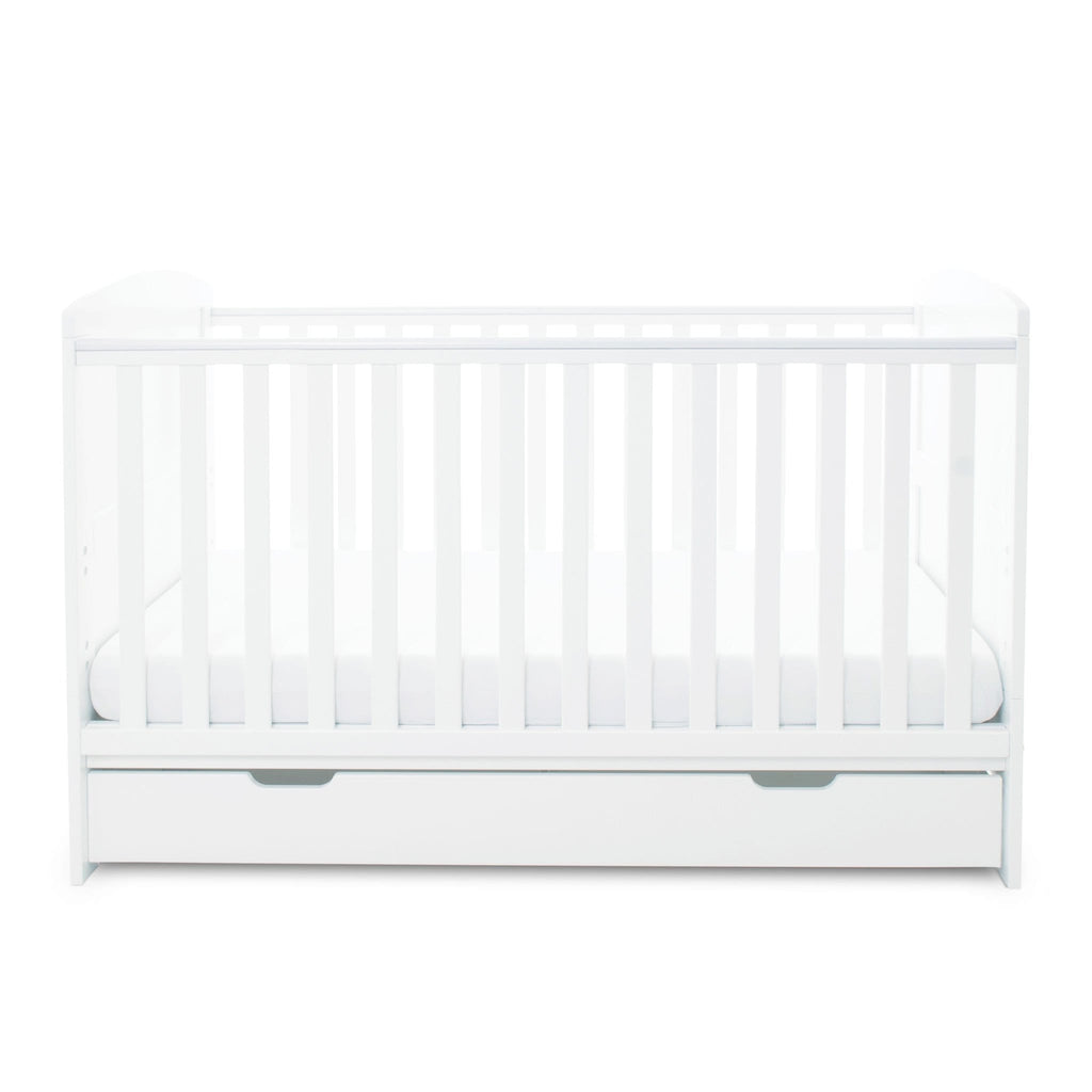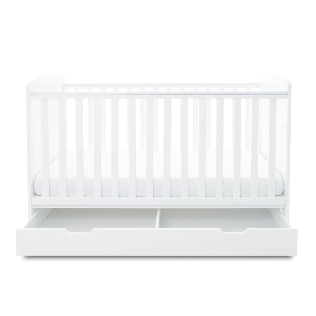 The Coleby Cot Bed Under Drawer in White is a subtle storage solution to help you keep your nursery clear of clutter. Matching the cot with a clean white finish, the Coleby Under Drawer gives a seamless, tidy finish to the set.