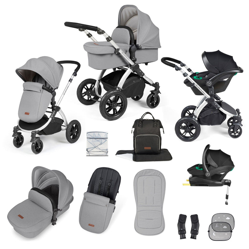 Ickle Bubba Stomp Luxe All-in-One Travel System with Isofix Base - Silver/Pearl Grey/Black