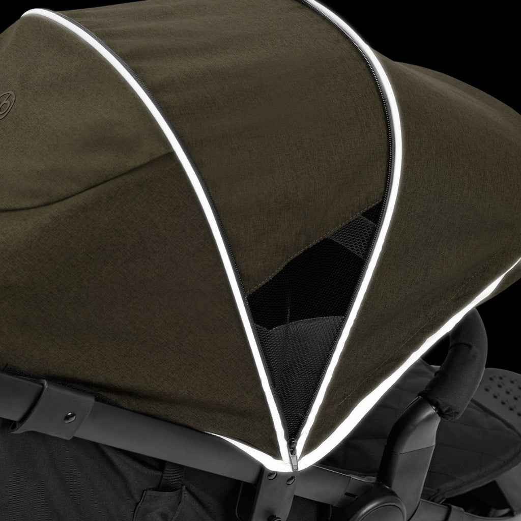 The extendable hood provides UPF 50+ sun protection, a pop-out sun visor, and breathable mesh panels. There’s also a viewing window, so you can keep an eye on baby at all times, plus a handy zip pocket to stash essentials like your phone, keys, or a snack.