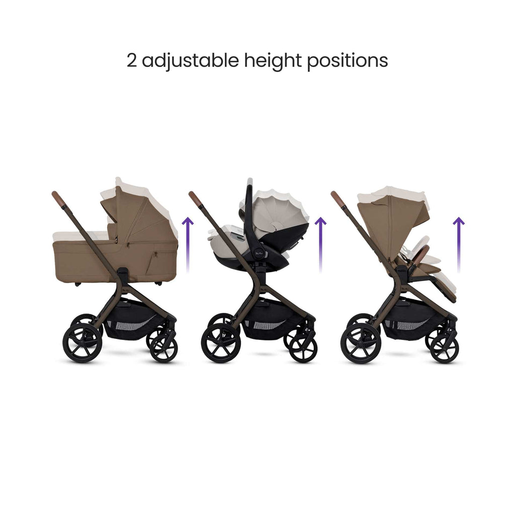 The clever two-height elevation system keeps your baby comfortably close in carrycot, stroller, or car seat mode. Ideal for taller parents or those special face-to-face moments, it helps you stay connected on every journey — a small feature with a big impact.