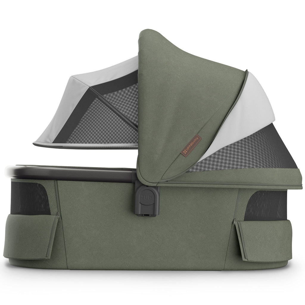 Carrycot with ventilated base, breathable mattress, and UPF 50+ canopy